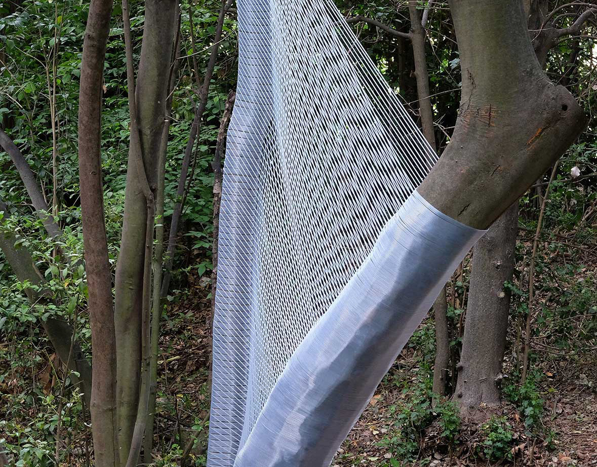 construction noir et blanc 2 - fil scoubidou sur chassis métal - 76 x 61 cm - 2021