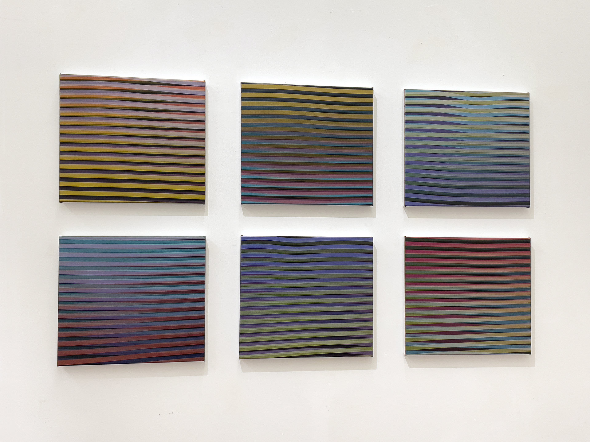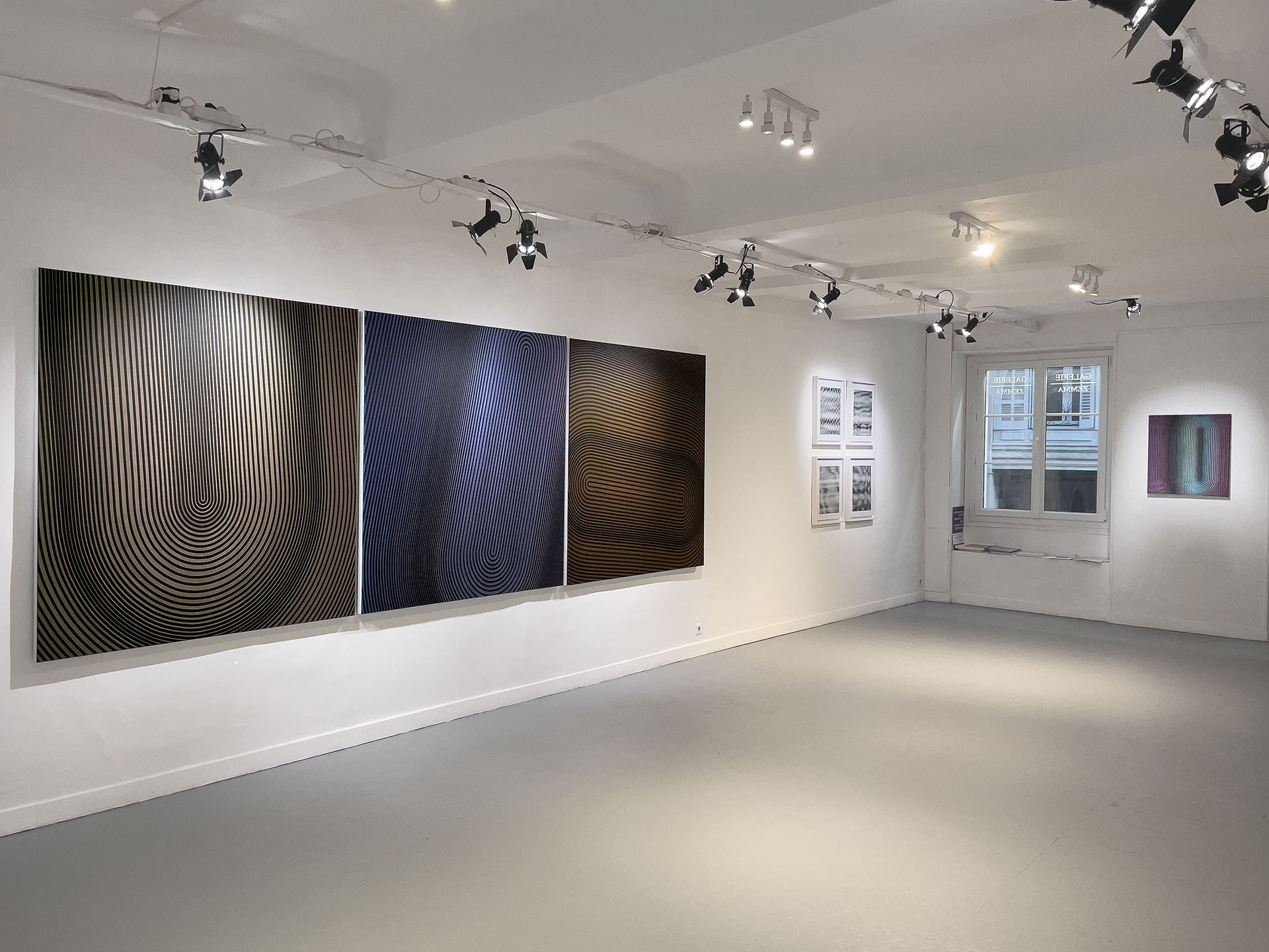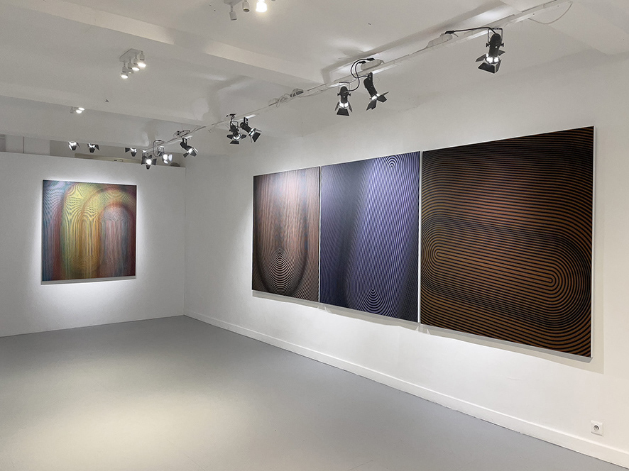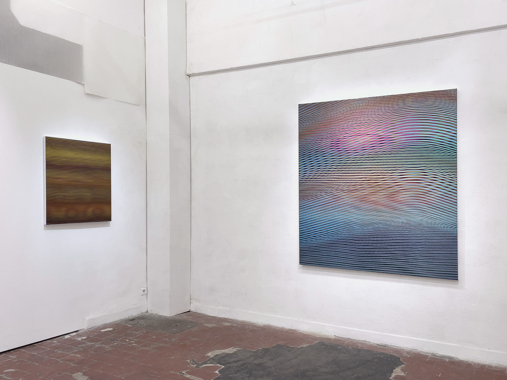 Une grande peinture à base de pigments iridescents est posée comme couvre-lit.